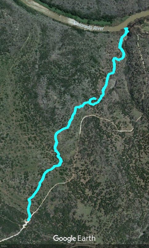 在热火的吃完烧烤之后,我和顾先生开始了第一天的徒步,具体路线如图1。按照线路走到底(路线图的最上端)就是Gorman Falls,是一个高达70foot的瀑布,那里就是我们第一天的目的地。