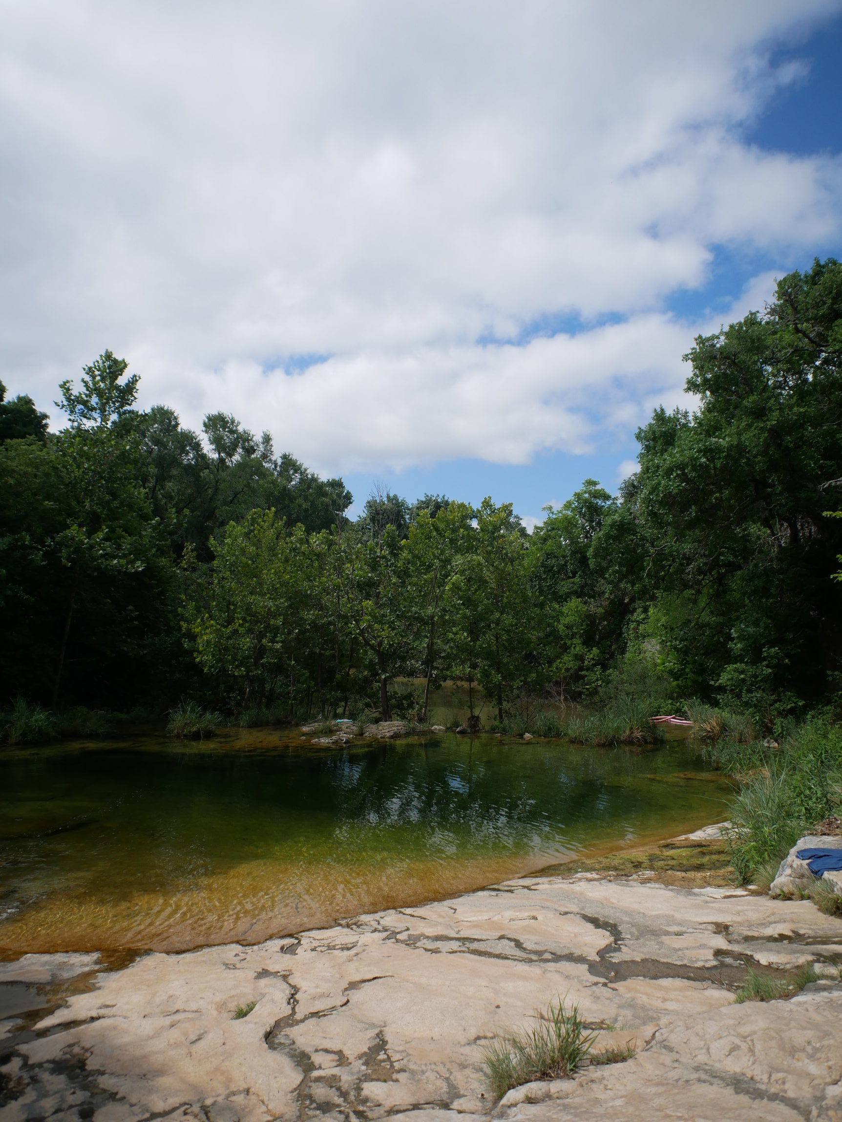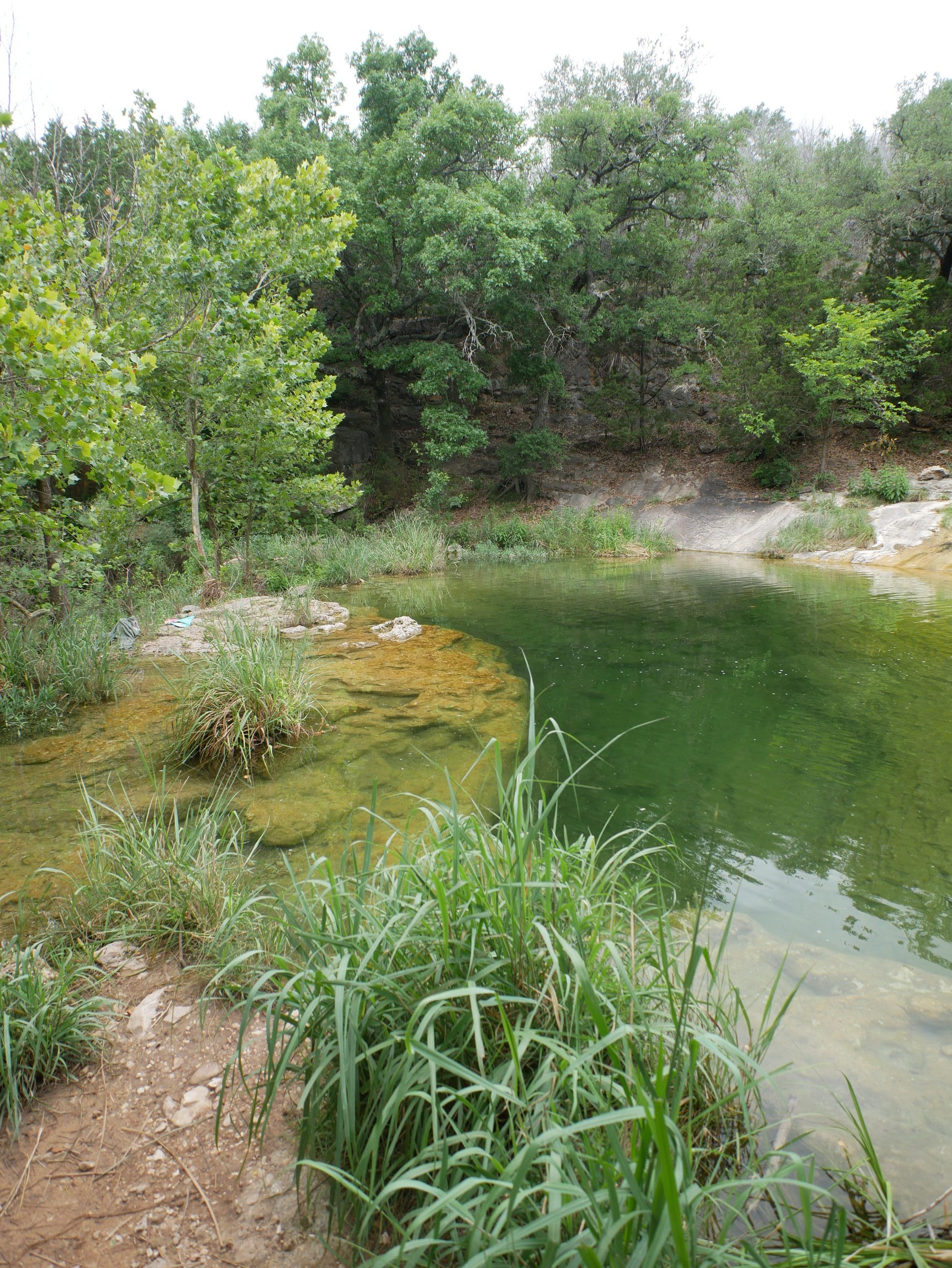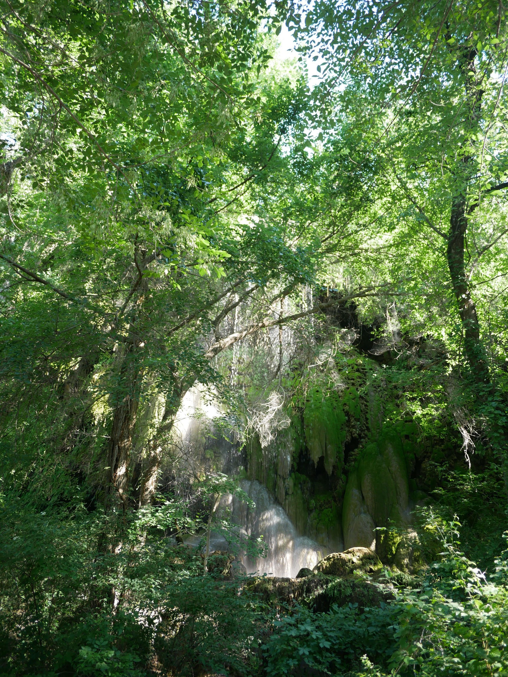 不过,到了终点的我们都十分的吃惊于瀑布的娟秀和树木之葱郁,这些都和公园其他地方的典型德克萨斯风格形成鲜明而强烈的对比。瀑布水量算是充足,毕竟在我们抵达的前一周下大雨导致进出公园的路都被淹了。青苔把岩石伪装成了葱郁的爬满山坡树丛,彩虹在手边,就在触手可及的位置,经久不变的呆着。