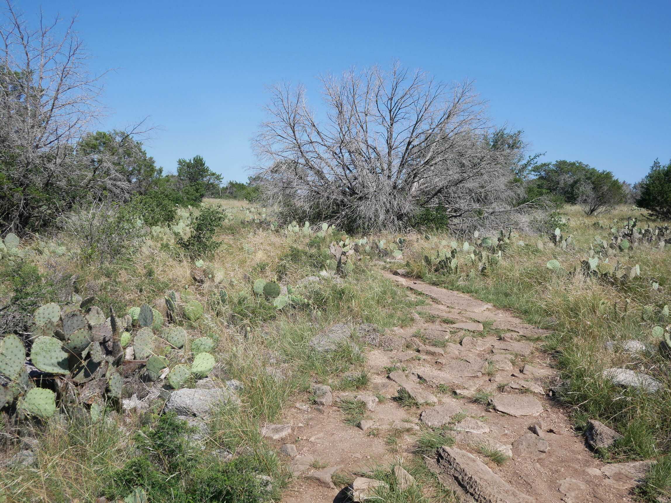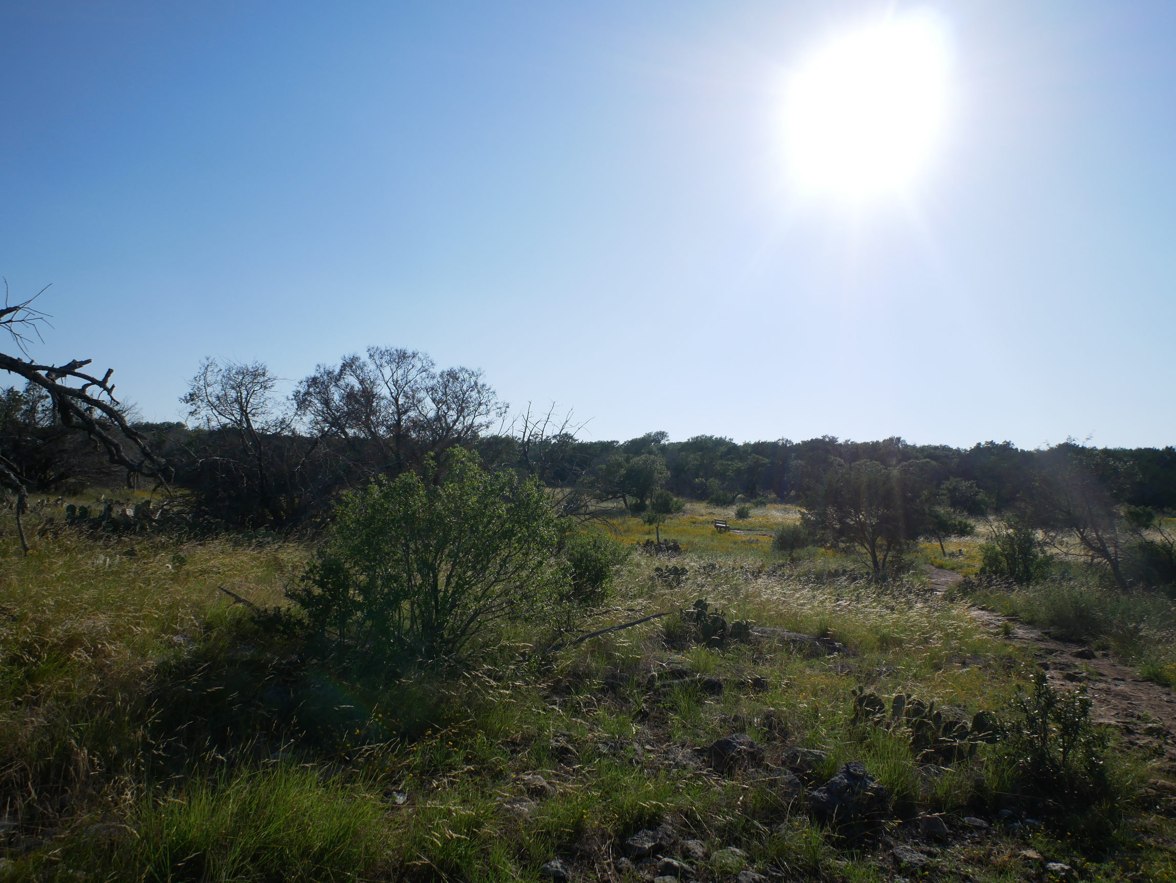 一共2英里左右的距离本来根本没放在眼里,但是德克萨斯炎热的下午硬生生让我感受到了极限的挑战。一路上大部分地方就如同下图2,炽热的太阳下些许的植被苟延残喘一般的萎靡(图3)。